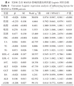 T2DM合并MAFLD影响因素的单因素Logistic回归分析