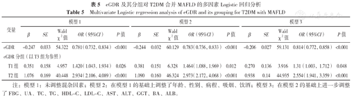 eGDR及其分组对T2DM合并MAFLD的多因素Logistic回归分析
