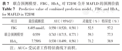 Predictive value of combined prediction model,FBG and HbA1c for MAFLD in T2DM