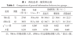 | TRA组 | 72 | 3.9±0.6 | 34.3±5.9 | 72(100.0) |