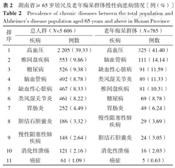 Prevalence of chronic diseases between the total population and Alzheimer's disease population aged 65 years and above in Hunan Province