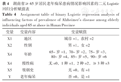 湖南省≥65岁居民老年痴呆患病情况影响因素的二元Logistic回归分析赋值表