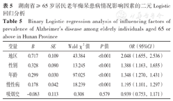 Binary Logistic regression analysis of influencing factors of prevalence of Alzheimer's disease among elderly individuals aged 65 or above in Hunan Province