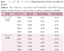 The "12th Five -Year Plan" and "13th Five -Year Plan" period primary medical resources and economic coupling coordination evaluation