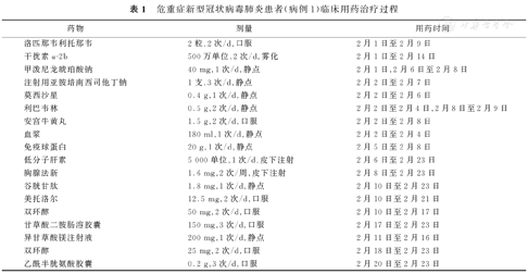 危重症新型冠状病毒肺炎患者(病例1)临床用药治疗过程