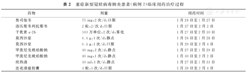 重症新型冠状病毒肺炎患者(病例2)临床用药治疗过程