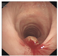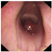 近些年来,随着呼吸机在临床上的广泛应用,气管插管病例呈逐年增加趋势。气管导管放置不当、频繁移位、吸痰操作不当、气道感染、导管放置过久等均可能造成气管插管后肉芽组织增生、息肉形成、气管狭窄。因此,插管过程中应尽量避免气道黏膜损伤,插管后加强气道管理,严格控制感染,尽早拔管,最大程度地避免气管插管病例的发生。气管插管后致气管高位息肉报道较少,尤其是表现为球形宽基底病灶阻塞管腔者。