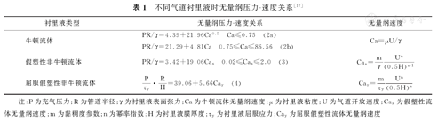 | 衬里液类型 | 无量纲压力-速度关系 | 无量纲速度 |
