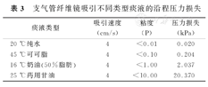 | 痰液类型 | 吸引速度(cm/s) | 粘度(P) | 压力损失(kPa) |
