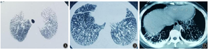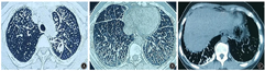 PAM是一种由于基因突变引起体内磷酸盐转运障碍[7],导致肺泡内微石聚集的罕见疾病。PAM早期无明显症状,患者多为体检时发现,多有家族聚集现象[8,9]。随着疾病的进展,肺泡内的微结石逐步增多、增大,可导致肺泡壁破坏、纤维组织增生、肺泡纤维化,从而引起肺通气和灌注功能障碍[10]。晚期可引起呼吸困难、干咳、胸痛、乏力、咯血等一系列症状[11]。因该疾病较为罕见,合并肺结核的情况则更为罕见,并且影像学和临床症状分离,极易造成误诊及漏诊。
