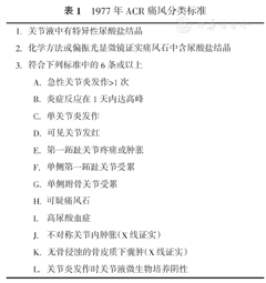 | 1. | 关节液中有特异性尿酸盐结晶 | |
