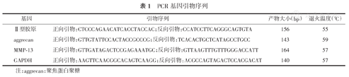 | MMP⁃13 | 正向引物:GTTGATAGACTCCGAGAAATGC;反向引物:GTTAAGTTTGTTTGGGACCATT | 164 | 57 |
