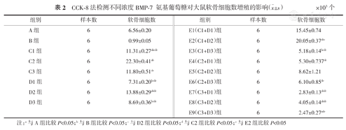 CCK-8法检测不同浓度BMP-7氨基葡萄糖对大鼠软骨细胞数增殖的影响(