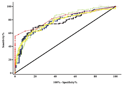 ROC曲线分析各方法检测的敏感度及特异度