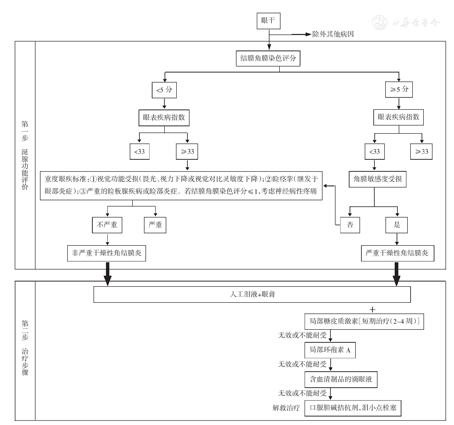 ④难治性/严重干眼症可使用含有免疫抑制剂或血清的滴眼液(LoEⅠa/*Ⅰb,LoA 9.1)(图2);不推荐硫酸羟氯喹、免疫抑制剂或利妥昔单抗用于干眼症的治疗。