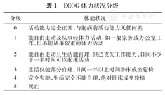 | 1 | 能自由走动及从事轻体力活动,如一般家务或办公室工作,但不能从事较重的体力活动 |