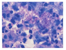 肺诺卡菌病的诊断需要从临床标本(痰、肺泡灌洗液及组织)中分离鉴定出微生物。77%~90%的病例可通过痰标本诊断[7]。诺卡菌为细丝状革兰染色阳性菌,弱抗酸染色阳性[14,15]。当临床怀疑诺卡菌感染时,实验室需要准备特殊染色及特殊培养基介质。一些痰去污液对诺卡菌是有毒性的,尤其是氢氧化钠、N-乙酰半胱胺酸和苯扎氯胺[16]。因此,临床医师需要对微生物实验室提供怀疑方向,以便进行更加精确的检验,提高检出率。