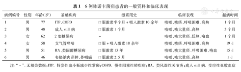 6例肺诺卡菌病患者的一般资料和临床表现