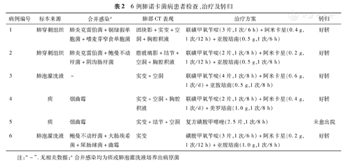 6例肺诺卡菌病患者检查、治疗及转归