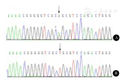 A:先证者堂兄基因检测结果(c.3043 T>A);B:先证者母亲NOTCH3基因检测结果(野生型)