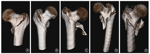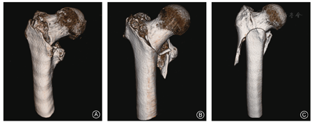 骨折分型是分析、描述骨折损伤规律的重要方法,常用于指导治疗及判断预后。骨折分型亦已成为临床医生之间交流、总结临床经验的标准化专业术语。过去,股骨转子间骨折分型源自常规影像学检查资料,但由于X线摄片角度选择的不确定性或二维输出的三维重建图像视角的差异性而导致了部分学术争论的出现。理论上,若想有效比较不同治疗方案的优劣势,必须严格建立在针对同一类型损伤的基础上。因此,基于数字化技术的术前自由视角的三维图像观察对确定股骨转子间骨折的临床分型尤为重要。