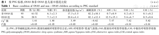 Basic condition of OSAS and non-OSAS children according to PSG standard (