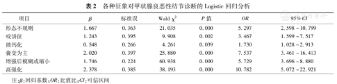 各种征象对甲状腺良恶性结节诊断的Logistic回归分析