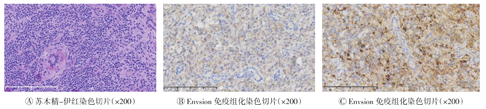 具体组织病理学表现为颌下腺腺泡萎缩,腺泡与导管周围见大量淋巴细胞和浆细胞浸润,伴间质纤维化(图1A);可见IgG和IgG4阳性浆细胞浸润,其中IgG4阳性浆细胞>10个/HPF,且IgG4/IgG阳性浆细胞>40%(图1B、图1C)。