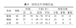 | 类型 | 例数 | 性别 | 年龄(岁) | 肿瘤分期 | ||||