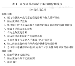 对于有明确脑血管病的患者,TCD可用于颅内、外血管循环状况的评估和随访;此外,TCD也可以在一些其他颅脑疾病的诊断和评估中起到一定辅助作用[8,10](表1)。