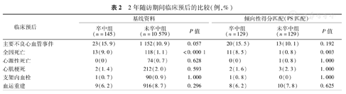 PCI次数(次, ±s) | 1.13±0.38 | 1.10±0.30 | 0.006 | 1.11±0.34 | 1.10±0.30 | 0.664 | |