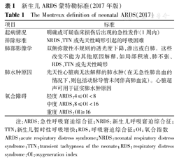 本次制定的新生儿ARDS定义尽可能地保持了与儿童和成人ARDS的一致性。新生儿ARDS蒙特勒标准(2017年版)见表1。