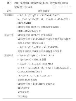 2017年欧洲白血病网络(ELN)急性髓系白血病危险度分层体系
