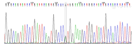 基因检测及验证:为进一步验证PCR-PFLP结果,将家系成员PCR产物直接测序,未被限制性内切酶NcoⅠ切开的成员(包括外婆、外公、母亲、姨母、姨母之子)测序结果显示无R192H变异;而父亲(能被NcoⅠ酶切开)测序结果显示为第5外显子G/A杂合变异导致R192H变异,证实PCR-RFLP结果准确可靠,提示患者基因变异来自父亲遗传而并非母亲(图3)。