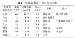 | 先证者家系成员 | 年龄(岁) | 空腹血糖(mmol/L) | HbA1C(%) | 诊断 | 治疗 |
