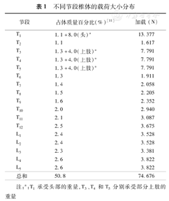 | 节段 | 占体质量百分比(%)[11] | 加载(N) |