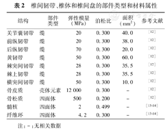 椎间韧带、椎体和椎间盘的部件类型和材料属性