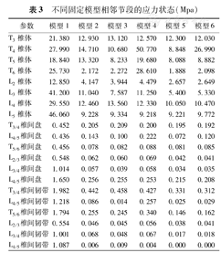在单生长棒固定模型中,对比分析模型2与模型3,可以发现进行双侧椎弓根螺钉固定可以增加头侧相邻节段椎体(T3、T6)、椎间盘(T3/4、T5/6)和椎间韧带(T3/4、T5/6)应力,但是能够减少锚定点椎体(T4、T5)、L4/5椎间盘和L4/5椎间韧带的应力。