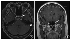 观察指标包括:(1)一般情况:性别,年龄,既往史;(2)临床特征:起病形式,首发症状,临床表现,病程时间,病程特点(单相或复发病程,复发次数),受累侧别(单侧或双侧受累),受累颅神经,临近结构受累情况;(3)实验室检查:血液常规、抗可溶性抗原(ENA)抗体谱、抗核抗体(ANA)、抗双链DNA(dsDNA)抗体、抗中性粒细胞胞质抗体(ANCA)等免疫相关检查,以及红细胞沉降率、C反应蛋白、酶免四项、腰穿脑脊液检查;(4)影像学检查:海绵窦MRI采用横断面和冠状面薄层增强扫描;血管评估采用磁共振血管造影(MRA)、CT血管造影(CTA)或数字化减影血管造影术(DSA);(5)活组织病理检查;(6)治疗方式及治疗反应。