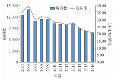 2005-2016年三峡地区累计报告菌痢病例126 196例,包括实验室确诊病例42 741例(33.87%)和临床诊断病例83 455例(66.13%);报告发病率为20.84/10万~39.36/10万,年均发病率为29.67/10万。