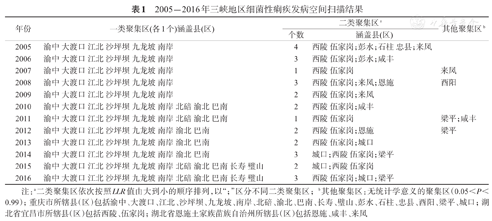 2005-2016年三峡地区细菌性痢疾发病空间扫描结果