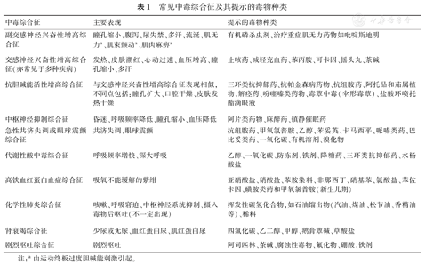 | 中毒综合征 | 主要表现 | 提示的毒物种类 |