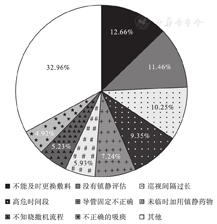 质量管理小组确定查检表内包括17项调查因素,完成合格查检表48份,结果显示:不能及时更换辅料累计205分(最高240分),占比12.66%;没有镇静评估累计185分,占比11.46%;其他因素中包括:对脱管事件重视不够80分,占比4.90%,没有约束效果评估方法75分,占比4.60%,详见图1。管理小组针对导管固定、镇静评估、气管内吸痰等技术制定SOP。