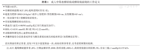 注:空腹状态指至少8 h没有进食热量;随机血糖指不考虑上次用餐时间,一天中任意时间的血糖,不能用来诊断空腹血糖异常或糖耐量异常