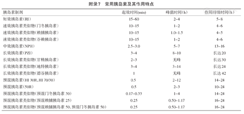 | 胰岛素制剂 | 起效时间(min) | 峰值时间(h) | 作用持续时间(h) |