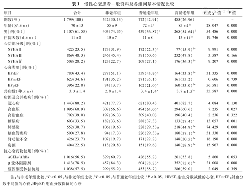根据年龄将CHF患者分为3组:非老年组(年龄<65岁)、普通老年组(65~79岁)和高龄老年组(年龄≥80岁)。