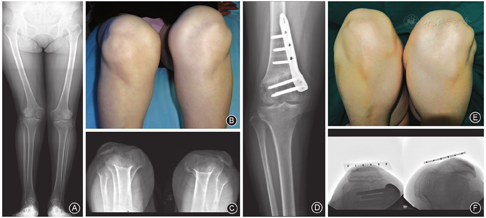 成人习惯性髌骨脱位的治疗原则与儿童不同,对儿童习惯性髌骨脱位,因儿童骨骺未闭,故可采用股四头肌延长治疗伸膝装置挛缩和低位髌骨[2],而对成人习惯性髌骨脱位,如采用该方法,则手术风险和并发症发生率较高[3,4]。目前,治疗成人习惯性髌骨脱位的文献很少[5,6],以个案报道为主[7,8,9],缺乏大宗病例的临床结果。文献报告的手术治疗技术包括外侧松解、股四头肌腱延长、近端和远端重排[5]、胫骨结节内移[6]、股骨截骨[9]等。文献认为单一的手术技术不能有效治疗习惯性髌骨脱位,通常需要多种手术技术的联合应用[1]。