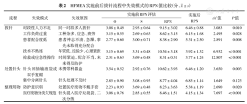 | 拔针 | 时段性人力不足 | 同一时段多人拔针 | 3.08±0.49 | 2.93±0.64 | 9.15±3.02 | 6.46±0.88 | 3.083 | 0.010 |