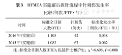 拔针流程中针刺伤标准化发生率由HFMEA实施前的0.062例次/(FTE·年)下降为0.038例次/(FTE·年)(χ2=6.698,P=0.008),下降了38.71%,见表3。