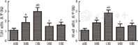 分别取各组PBMCs悬液,PBS洗2遍,采用Trizol法抽提细胞总RNA,反转录后采用实时荧光定量PCR法检测各组PBMCs中TLR4 mRNA及NF-κB mRNA表达情况。TLR4及NF-κB引物采用Primier 3.0在线软件设计,见表1。反应条件:94 ℃预变性4 min;94 ℃变性30 s,56 ℃退火30 s,72 ℃延伸25 s;共30个循环,72 ℃再延伸4 min。样品均重复检测3次,最后通过计算2-△△Ct获得各基因的相对含量。